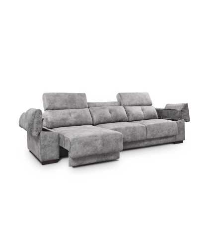 Sofá chaiselongue de 310 cm Mod. Nadal Diseño y confort. Telas antimanchas Bianca con hasta 12 colores a elegir. Arcón en chaise longue 2 motores relax eléctricos de regalo...